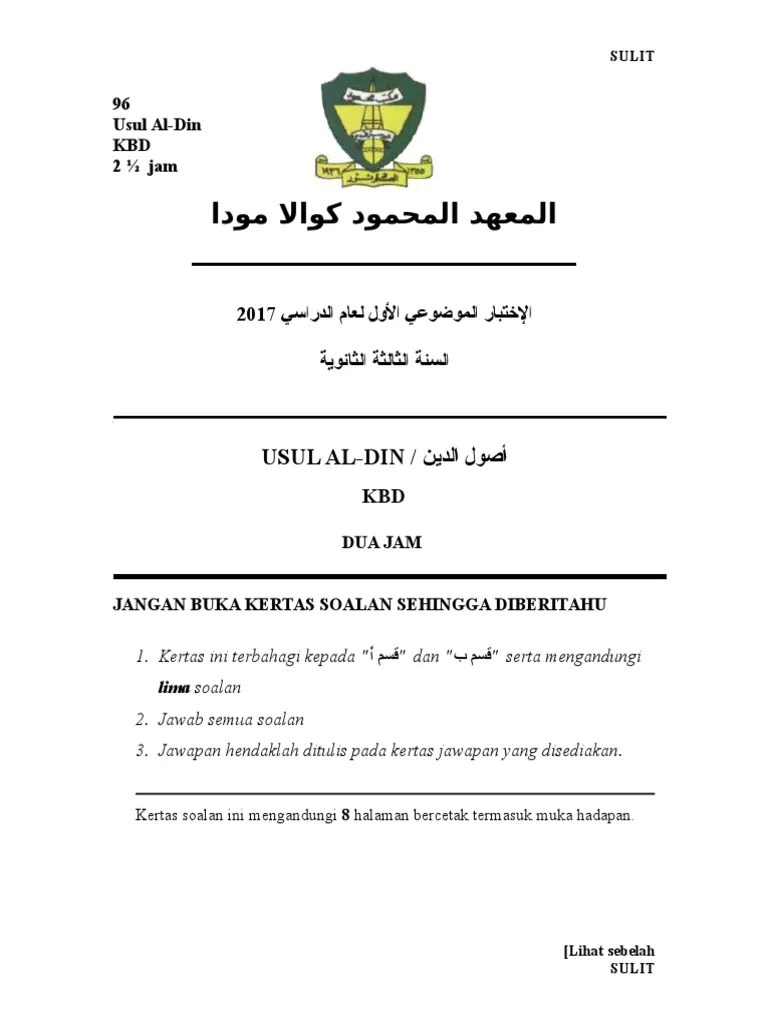 Bahasa arab · tajwid · tilawah · usuluddin · syariah . Azmir bin alim, muhammad yusuf abdul kadir penerbit: Soalan agama islam pt3 contoh 84 kunci emas formula a pt3 tingkatan 1 2 3 pendidikan islam revisi siri 3 skor mumtaz soalan usuluddin pt3 .